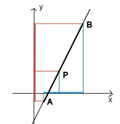 Börja med att pricka in punkterna A och B i ett koordinatsystem och rita linjen, gör en ungefärlig uppskattning var på linjen du har punkten P