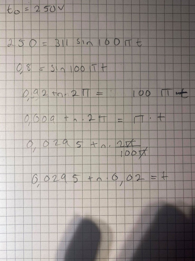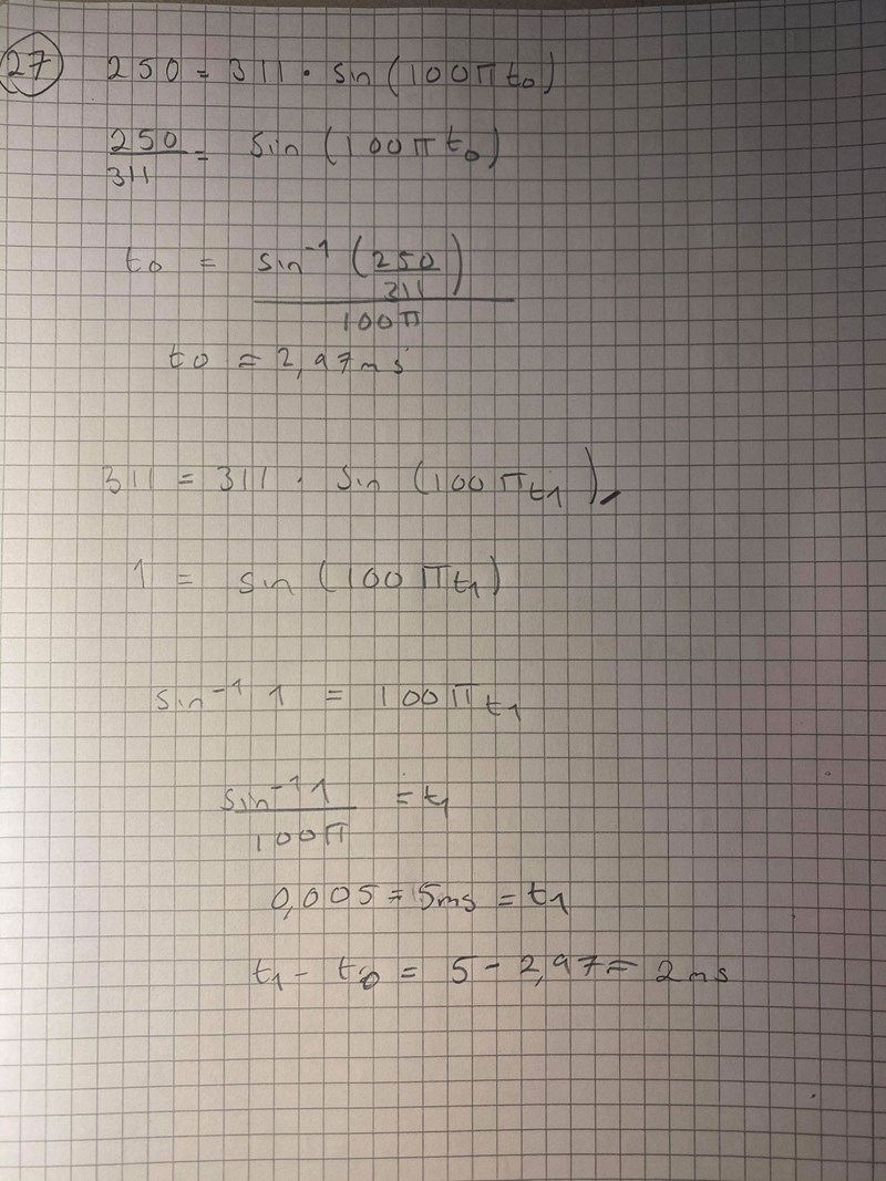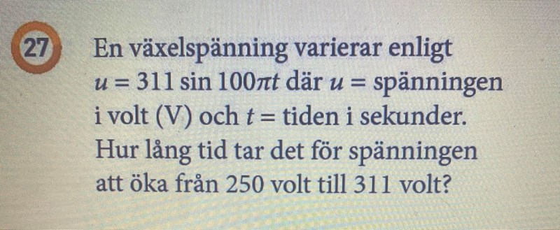 - Kalla tidpunkten då spänningen först är 311 V för . Beräkna .