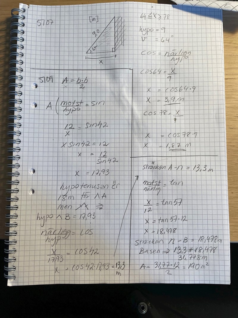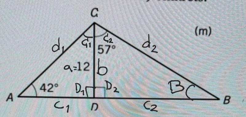- sin(A) = a/d1, dvs sin(42°) = 12/d1