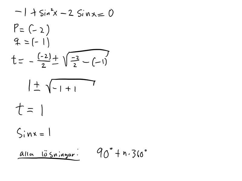 Den sista gäller för tydlighetens skull. Ekvationen är alltså (cosx)^2+2sinx=0