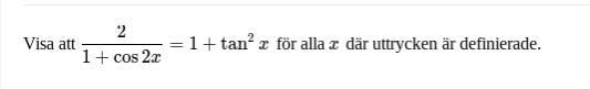 Jag tror inte riktigt att jag hänger med. Det jag hakar mig upp på är när jag försöker göra om det uttrycket jag använde i min ansats till att exakt likna vänsterledet. Det enda som skiljer sig i täljarna mellan och ekvationens vänsterled är 2:an. Men om jag förlänger kvoten med 2 så blir det inte samma nämnare.