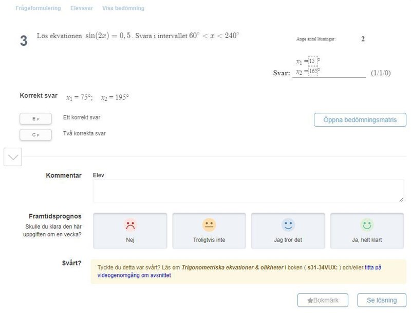 Sen tar vi andra lösningen a = 180-30 + n*360, sätt in 2x istället för a och förenkla