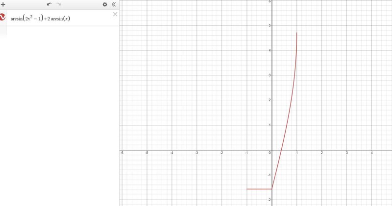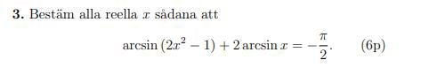 Därför att definitionsmängden inte stämmer. Om du studerar ursprungsekvationen en stund bör du se att den i själva verket är . Detta för att om är vänsterledet alltid större än . Detta kan motiveras enkelt med enhetscirkeln om du skulle behöva göra det på en tenta.