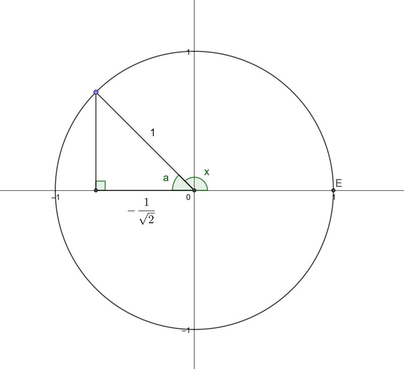 trianglarna ska vara ritade så att biten på x axeln ska vara negativa, enligt cos(x)=