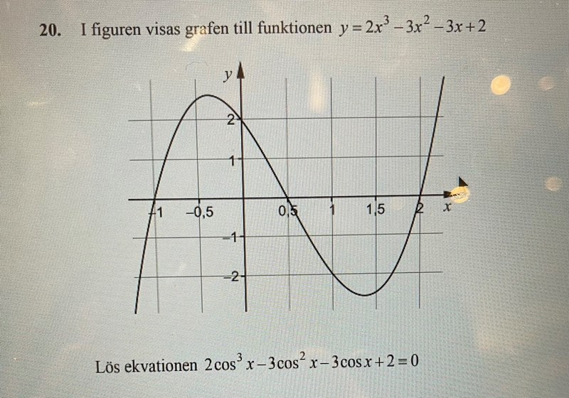 Sätt cos x = vart och ett av översta funktionens nollställe. Kommer bara att funka i 2 fall av de 3 ovan.