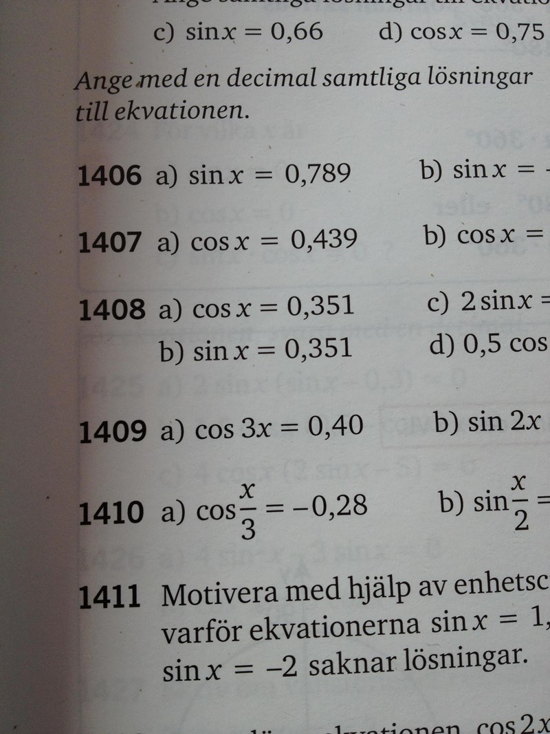 Gör på samma sätt på 1409a bara att du (explicit eller i huvudet) sätter t = 3x och först löser i t och sedan tillbaka till x.