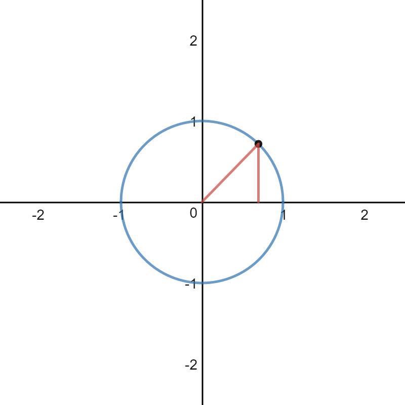 är vinkeln i enhetscirkeln, den har även en vinkel under.