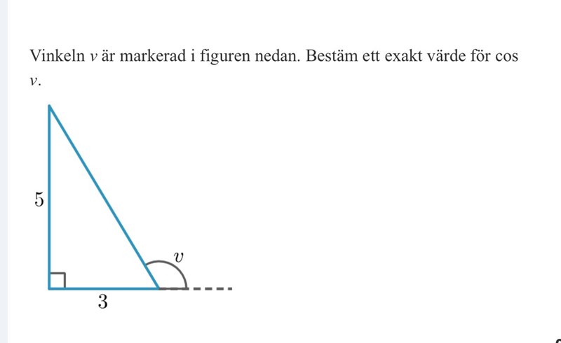 Du vet att detta värde är lika med sin(v) och du kan sedan beräkna cos(v) med hjälp av trigonometriska ettan sin2(v)+cos2(v) = 1.