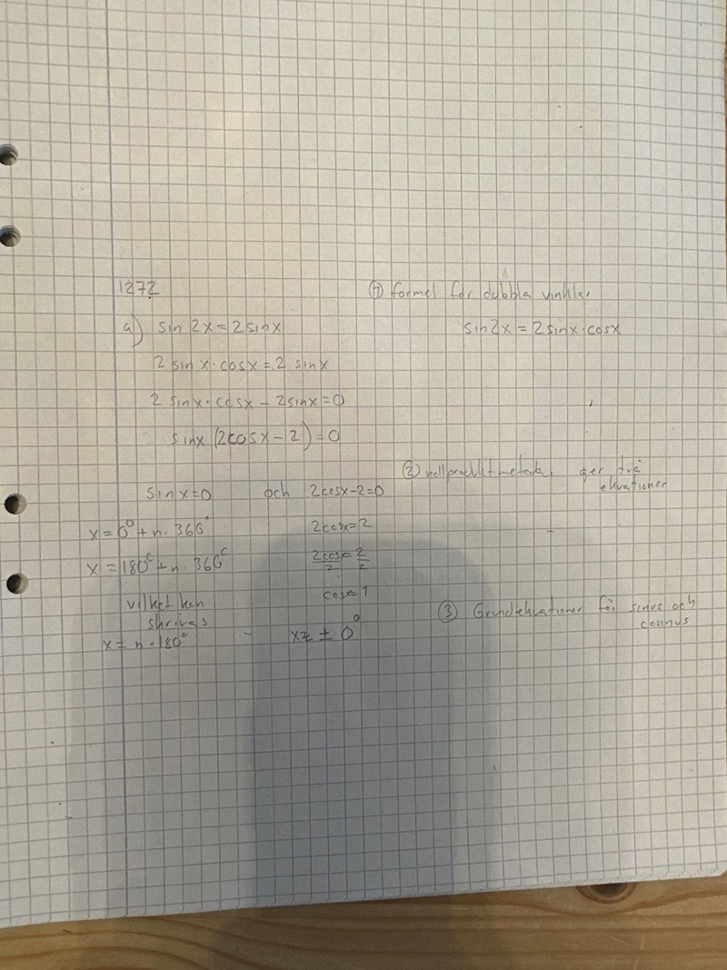 Trigonometriska formler, faktorisering, nollproduktEr