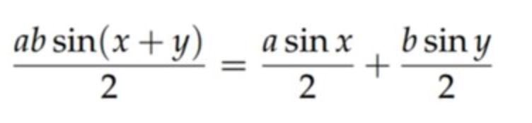 Högerledet är arean av den vänstra triangeln (enligtareasatsen) plus arean av den högra triangeln (enligt areasatsen). Multiplikation med sidan som har längd 1 är inte utskrivet.