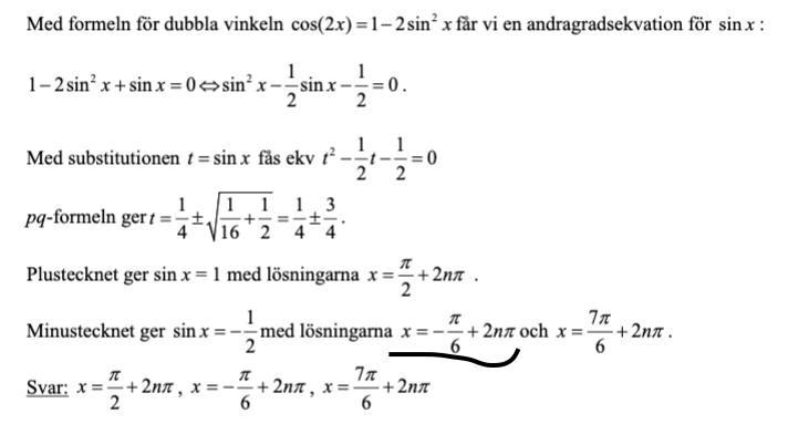 Asså, har intet ritat den själv, men har använt det här bild. Jag kan se att om tar streckan från sin -1/2, så går samma strecka till andra siden och blir - pi/6. Men jag forstår dock fortfarande inte varför det inte blir 11 pi / 6... :/