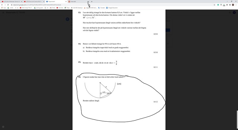 Trigonometry halvcirkel med radien r bestäm radiens längd