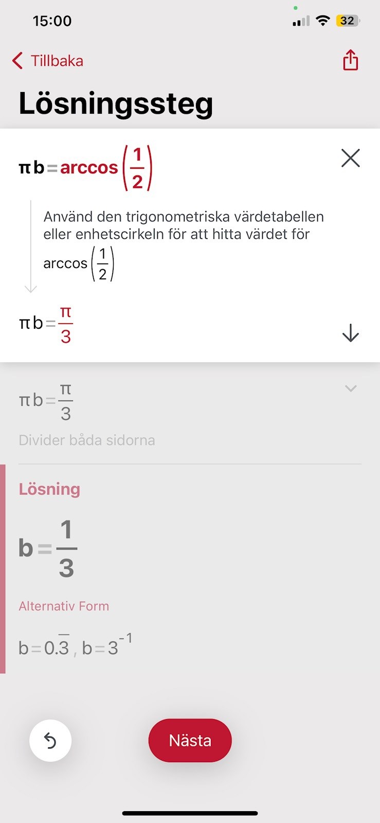 Att cos(pi/3) = 1/2 är ett av standardvärdena, så det är den trigonometriska värdetabellen du bör använda.