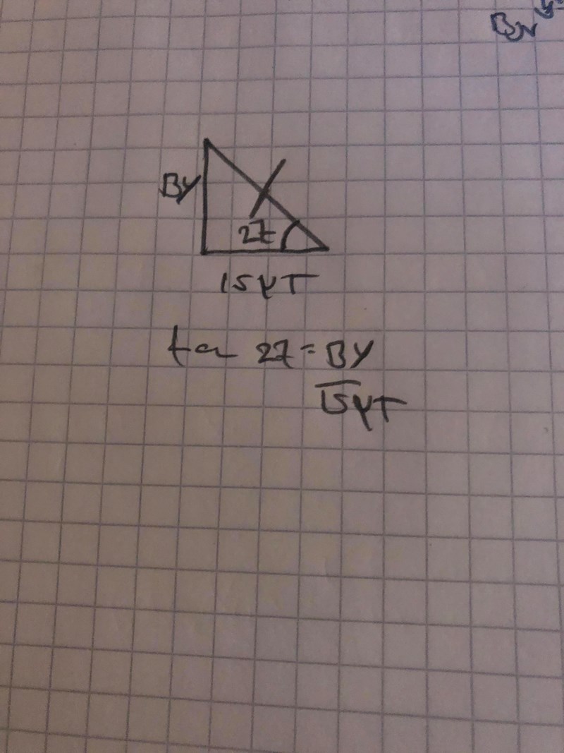 så tan 27 = så löser man ju bara ut B men ja satt rätt länge och försökte rita ut en triangel som passade på beskrivningen men vet ej om ja ritat den rätt blir de såhär ?