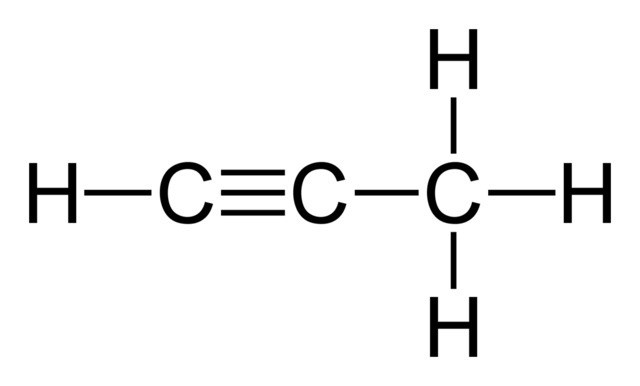 Så i propanmolekylen finns det bara enkelbindningar, men i propyn finns det en trippelbindning mellan två av kolatomerna.