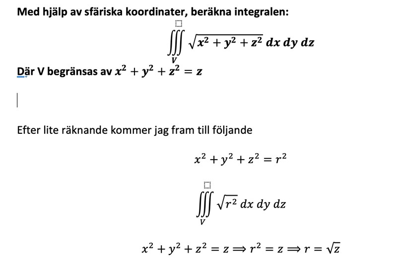 Trippelintegral med sfäriska koordinater.