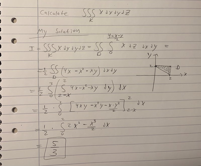 Jag ska beräkna trippelintegralen över kroppen K där integranden är x.