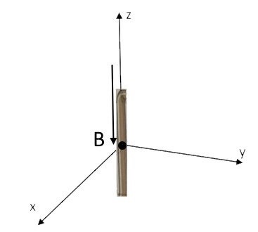 Stången parallell med z-axeln är bara förflyttad uppåt i z-led och bidrar därmed med