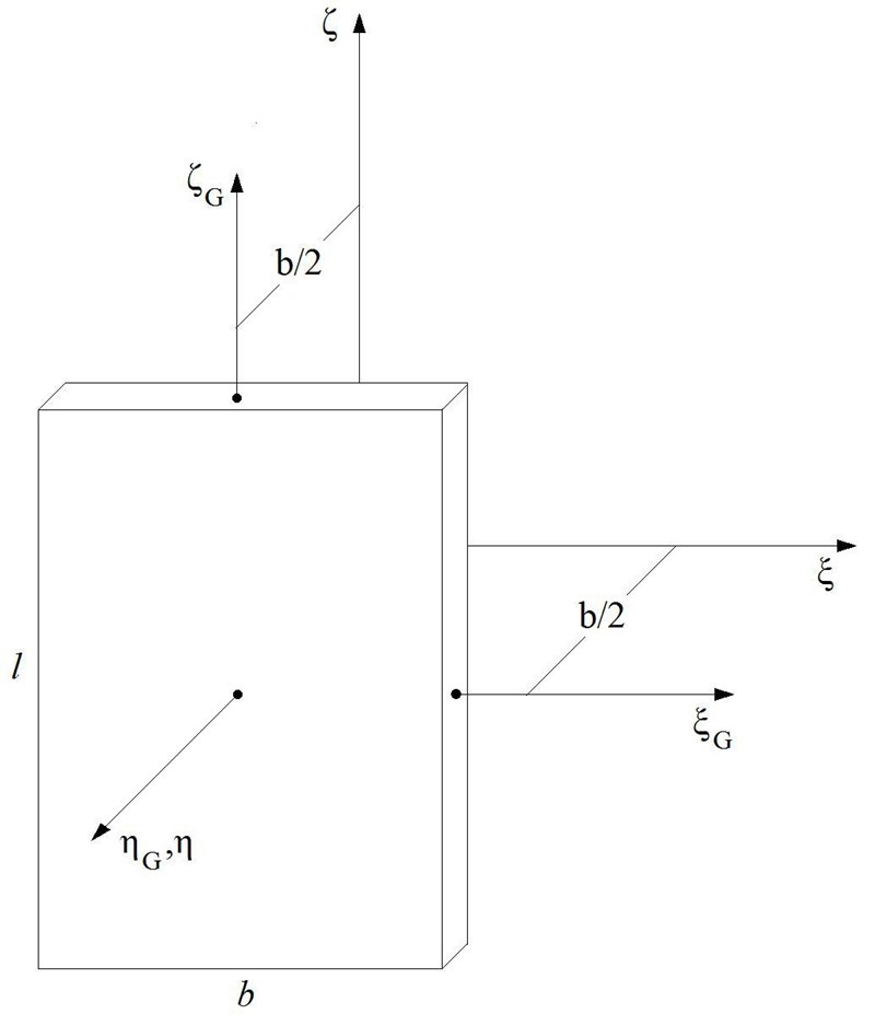 Nedan har vi vår rektangulära platta där G står för axel genom plattans egna masscentrum: