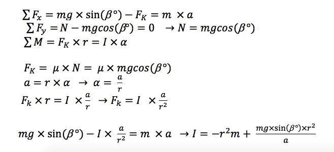 Jag har kunnat beräkna tröghetsmomentet för en en kula som rullar nedför en backe på följande sätt: