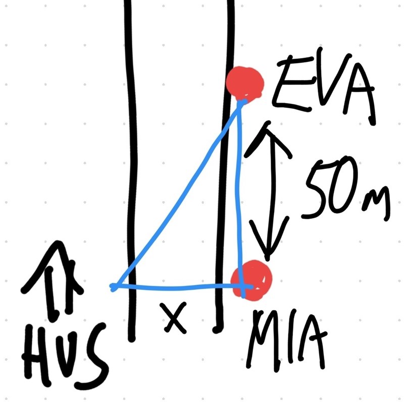 Ja, jag gjorde den sen och räknade med cosinus, jag fick då rätt svar. Men jag förstår inte varför jag ska sätta vinkeln vid eva och inte mia