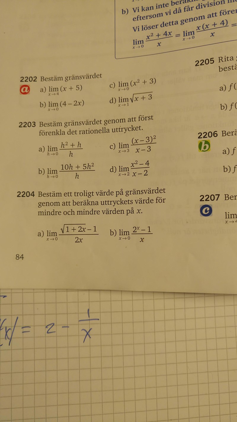 Bestäm ett troligt värde på gränsvärdet genom att beräkna uttryckets värde för mindre och mindre värden på x? (jag förstår frågan (på ett ungefär) men ändå inte så att säge) eller jag vet rakt av, helt enkelt inte hur man gör det här.