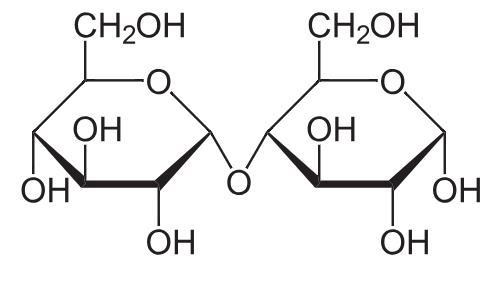 Nästa exempel vi kan kolla på är maltos, som är en disackarid som påminner lite om laktos.  Jag orkade inte rita egna figurer för just laktos, men hittade bra bilder för maltos, så du får hålla till godo med det i stället! (Fundera gärna på vad skillnaden mellan maltos och glukos är, och om denna skillnad spelar någon viktig roll i förklaringen!)