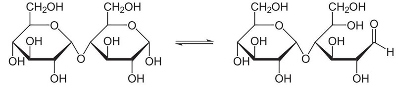 I ren, fast form förekommer enbart den slutna så kallade hemiacetalformen ("hemiacetal "är ett fint ord för en aldehyd som har reagerat med en OH-grupp). Detta gäller såväl glukos som maltos och laktos.