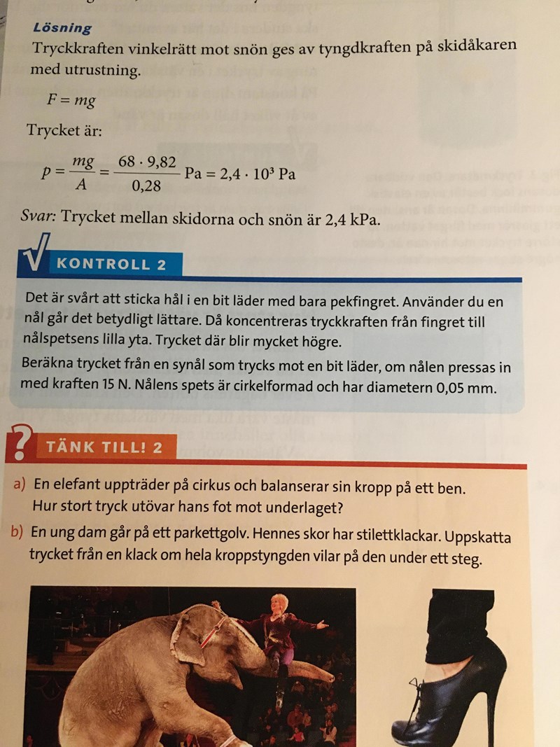 Beräkna trycket från en nål med kraften 15N och diametern på nålen är 0.05mm.