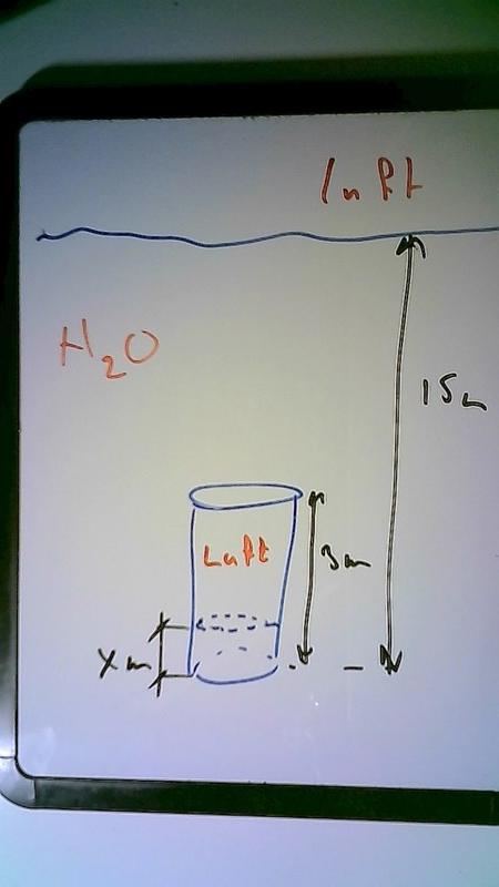 P0V0 = PV (Där P och V är tryck resp volym i nedsänkt läge och P0 och V0 gäller före nedsänkning)