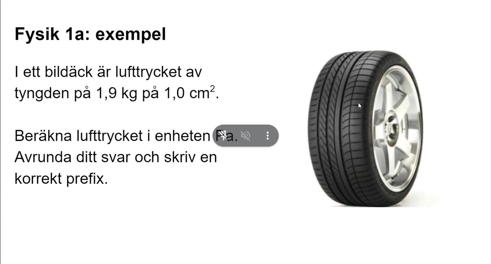 "I ett bildäck är lufttrycket lika stort som tyngden av 1,9 kg på en yta som är 1,0 cm2"