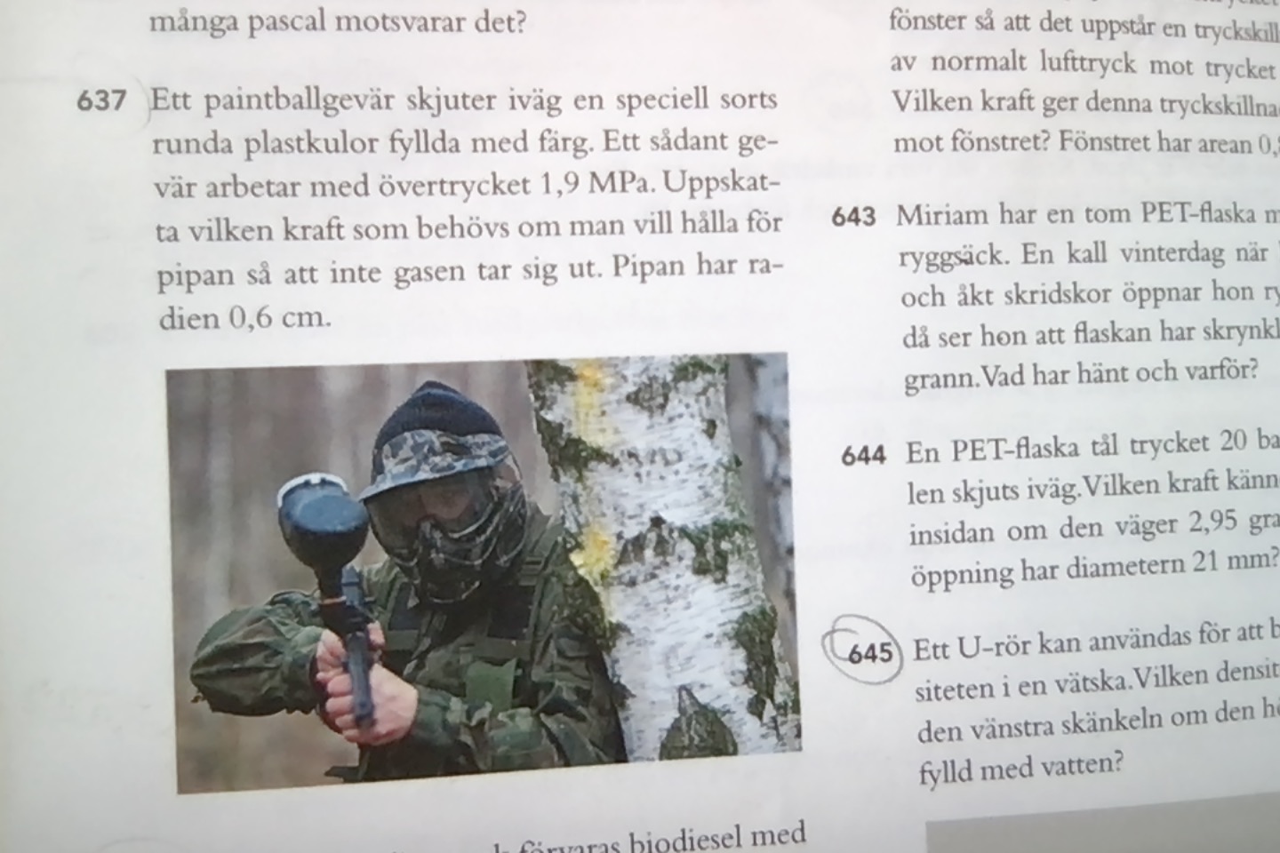Jag förstår inte riktigt uppgift 637. Om jag ska räkna ut kraften så tar jag ju trycket gånger arenan. Men varför räknar man bara med övertrycket, alltså 1,9 MPa, och inte övertrycket med lufttrycket vilket blir det totala trycket?
