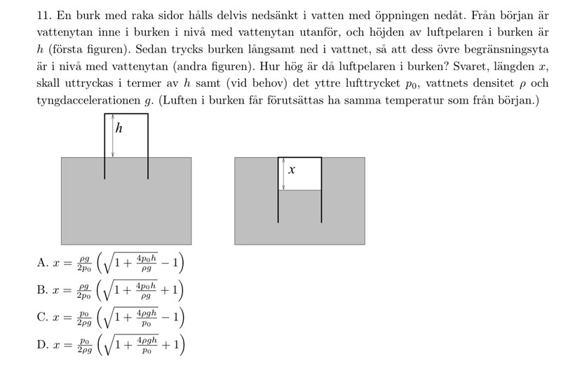 På djupet x är trycket P1=P0+xρg P_1=P_0+x\rho g varför P0h=(P0+xρg)x P_0h=(P_0+x\rho g)x eftersom volymen är proportionell mot x resp h. Alltså har vi