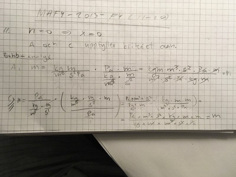 (I a) )Jag antar att det måste vara samma enhet på två siffror/tal för att addera dem. Underrotecknet fås roten ur m^2 och sedan multiplicerat med 1/m, vilket verkar bli en dimensionslös/t siffra/tal? Håller du med?