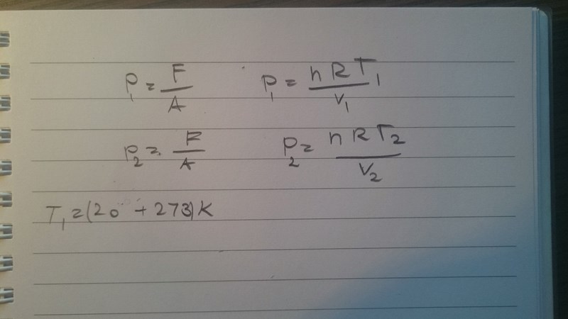 Eftersom F och A är konstanta är förstås F/A konstant. Temperatur anges i Kelvin.