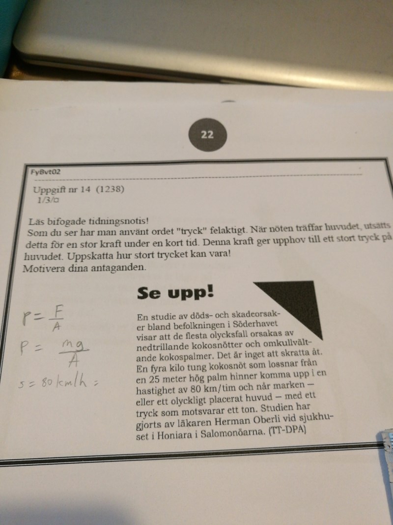 Jag fastnade på denna fråga i 20 min nu och vet ej hur man ska tänka. Alltså vi har massa men ej area