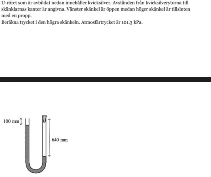 Fick då 85341.550592 Pa vilket inte stämmer överens med facit. Hade någon kunnat hjälpa mig förstå vad jag gjorde för fel?