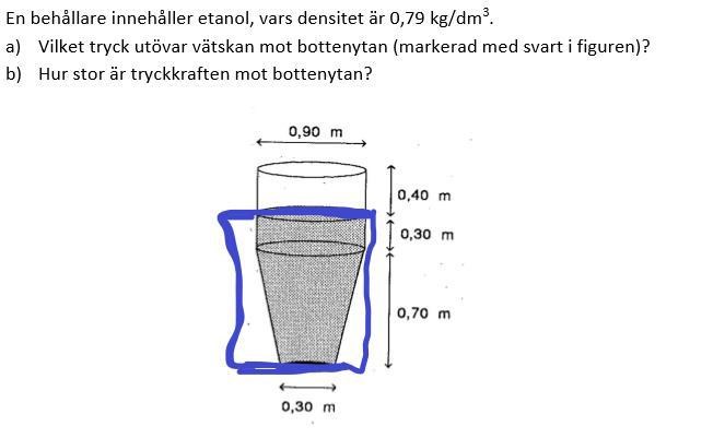 För b-uppgiften: Hur gör man för att beräkna tryckkraften mot bottenytan?