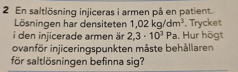 Jag har lite svårt att förstå denna uppgiften... Engligt facit skulle man räkna ut vid vilken höjd vätsketrycket i behållaren var högre än trycket i armen, men varför då? Eller kan det vara allmänbildning? Skulle man kunnat lista ut det från uppgiften?