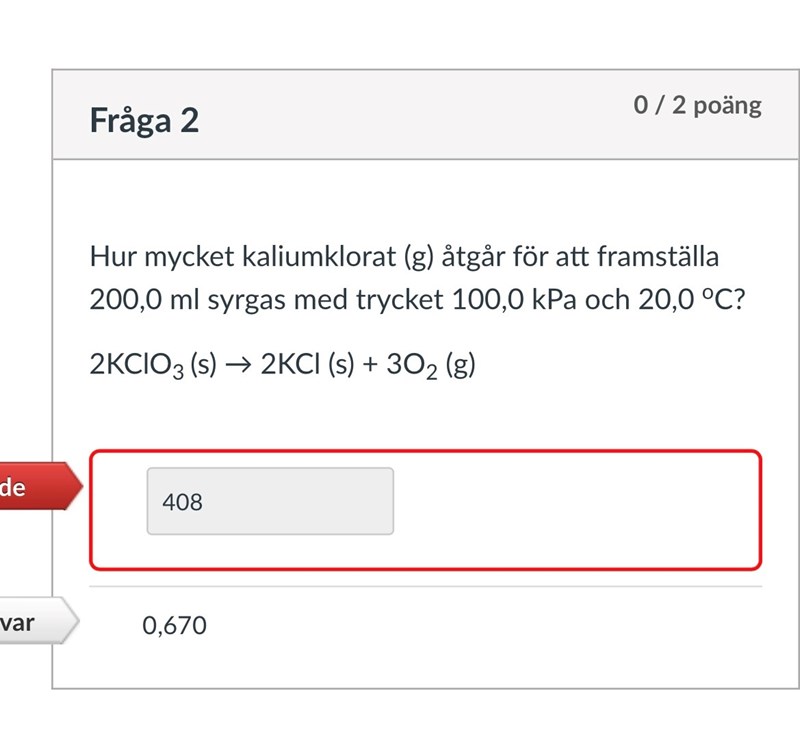 Oskar.bananfluga skrev:Som ni kanske ser så har jag räknat ganska fel. Tror det framför allt är substansmängden jag räknar fel på. Räknar den som att 3 mol syrgas är 2 mol kalciumklorat. Och sen kommer jag inte längre.