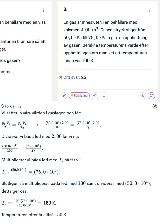 Jag gjorde det? Skillnaden är bara att jag räknade ut 50 000 Pa / 100 istället för att multiplicera 75 000 Pa med 100, multiplicera VL med T och sen dela 75 000 · 100 med 50 000