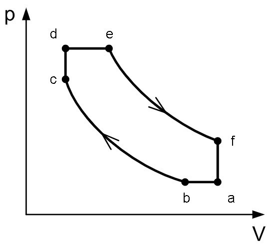 e-f: isentropisk expansion f-a: isochorisk värmebortförsel