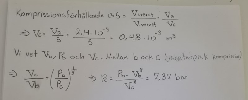 Ber om ursäkt om det var otydlig, det var givet i uppgiften att Va= 1,2Vb och därför Kunde jag beräkna Vc mha kompressionsförhållande.