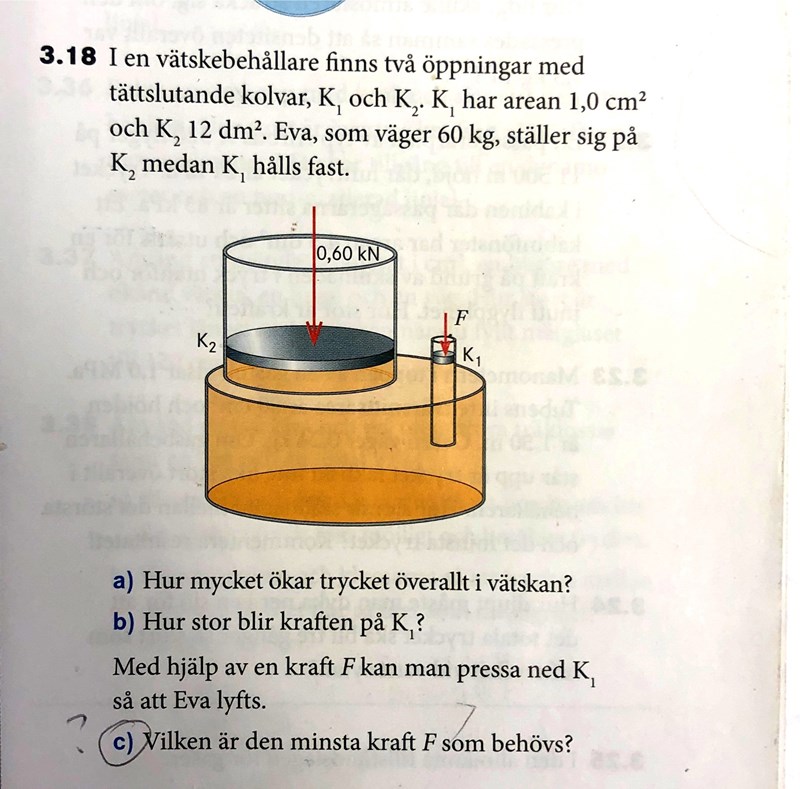 Jag förstår inte den c) frågan, "Vilken är den mista kraft F som behövs?"