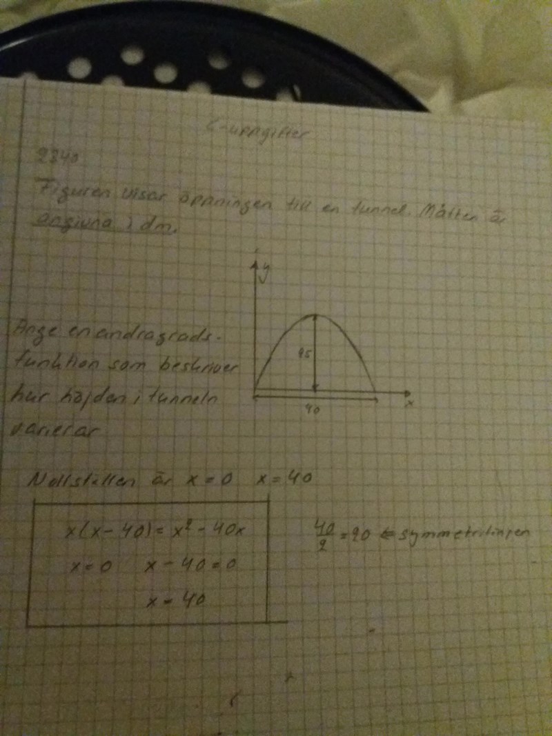 Du vet två nollställen och du vet en annan punkt på grafen dvs . Då kan skriva funktionen på formen där är dina två nollställen. Du söker alltså .