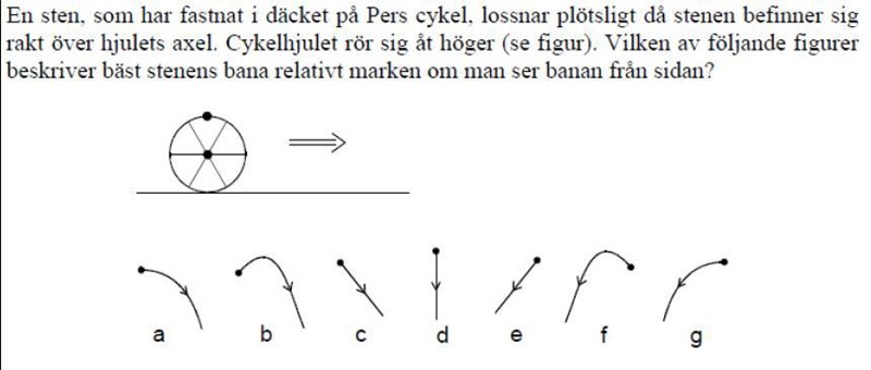 Man ser att stenens bana börjar åt olika håll i alla figurer a-g.