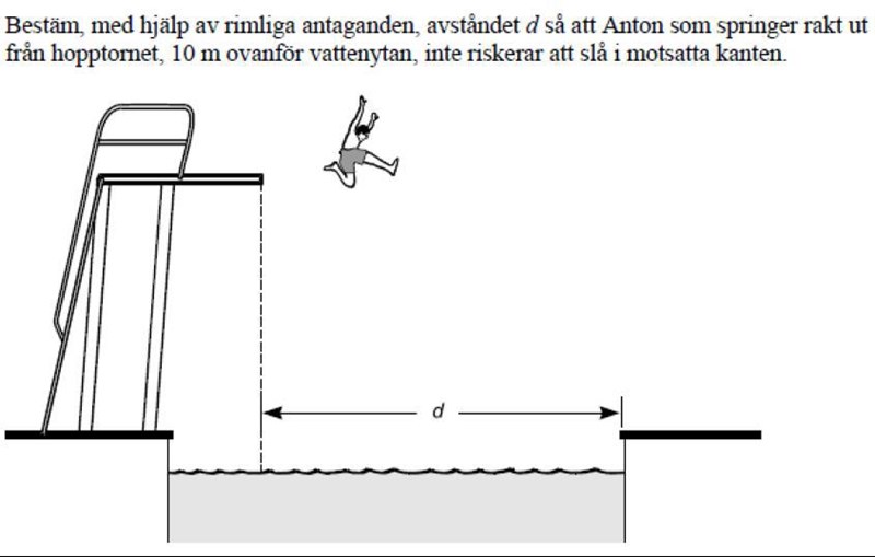 Hur fort kan Anton springa när han lämnar hopptornet?