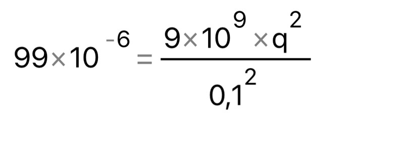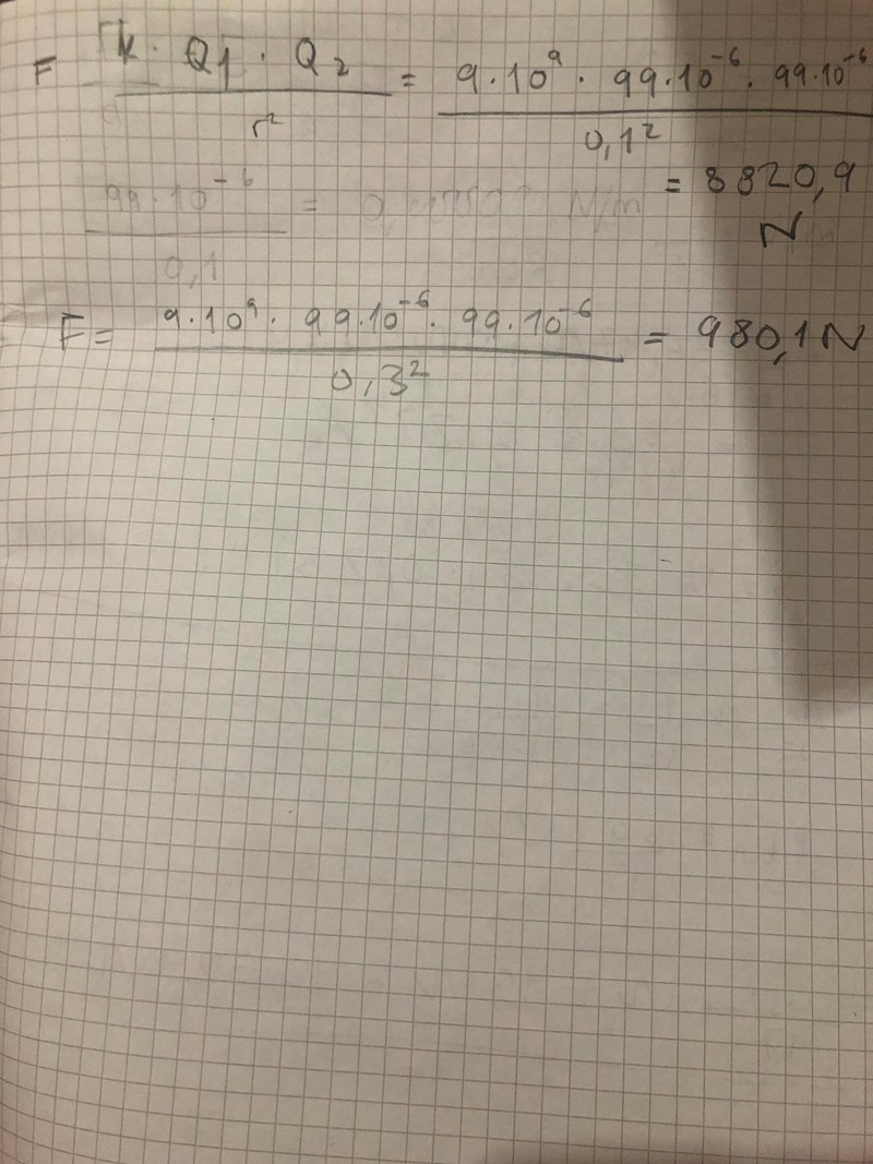 Ja. I formeln har du antagit att deras laddningar är 99 mikro-Coulomb. Det är inte alls vad som står i uppgiften.