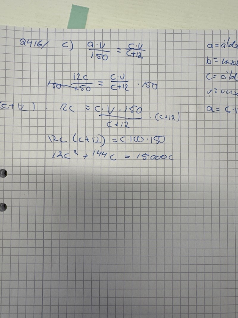 Summa summarum: Du missade ett v=100 i VL och fick då 15000c istället för 150c. Annars gjorde du helt rätt!