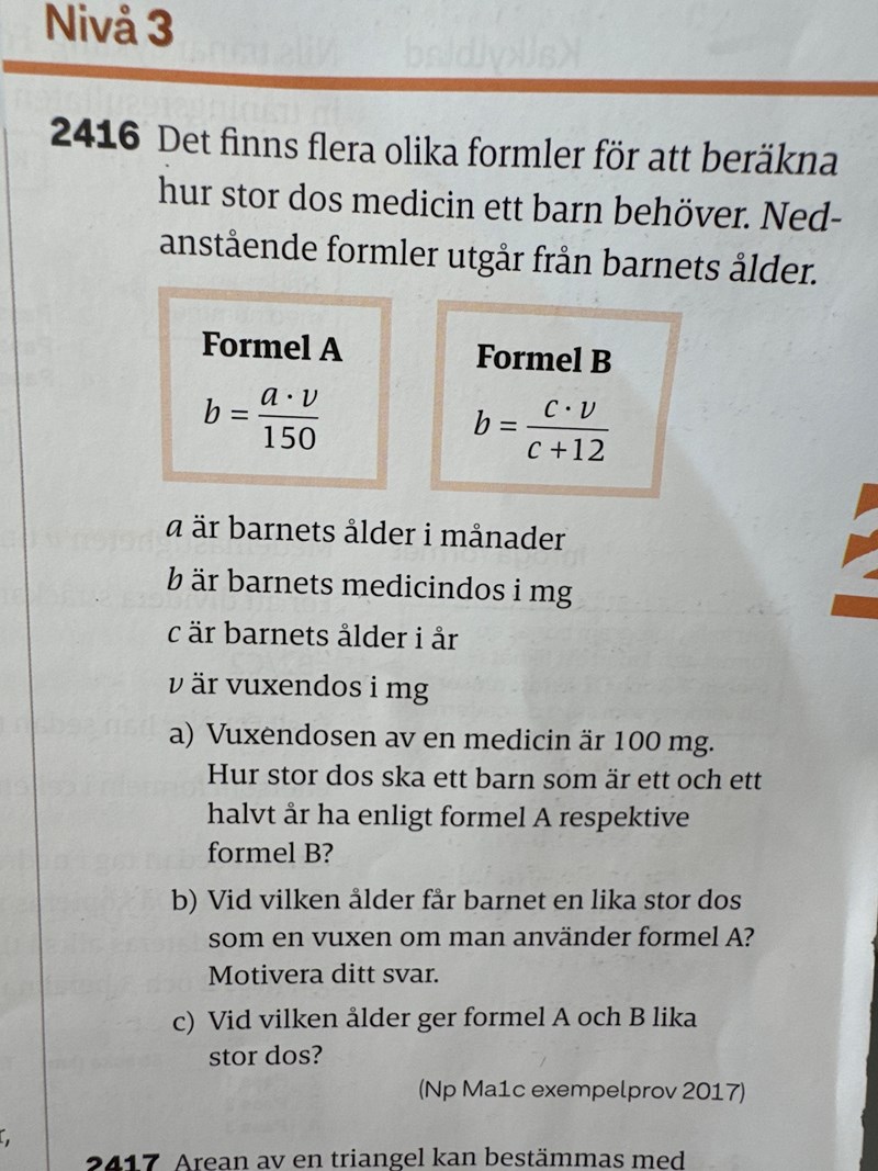 Titta på enheterna för åldern! I formel A använder man barnets ålder i månader och i formel B barnets ålder i år. Kommer du vidare då?
